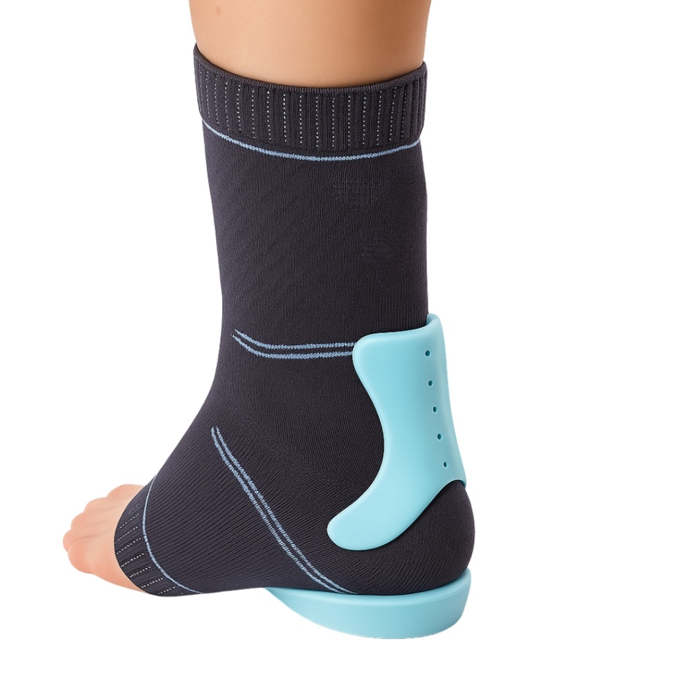 Инновационный бандаж для голеностопного сустава разработан из эластичного материала AuraDynamic прекрасно пропускает воздух, избегая размножения патологической микрофлоры. Изделие изготовлено с учетом всех анатомических возможностей. Имеет специальные гелевые полоски, в средине изделия, для предупреждения скольжения и скручивания бандажа на ноге. Фиксатор голеностопного сустава изготовлен методом уникальной вязки, это позволяет создать его максимально комфортным и приятным к телу. Особенность данного бандажа - две силиконовые подушечки, которые располагаются на обеим сторонах ахиллова сухожилия, выполняя защитную функцию. Для создания равновесия между двумя ногами и уменьшением давления на сустав, под вторую пятку помещается специальный съемный подпятник. Бандаж голеностопного сустава обеспечивает компрессионный, легкий массажный и умеренный поддерживающий эффект. Сочетание возможностей, приспособления для голеностопного сустава, улучшает кровообращение и способствует быстрому рассасыванию отеков и гематом.